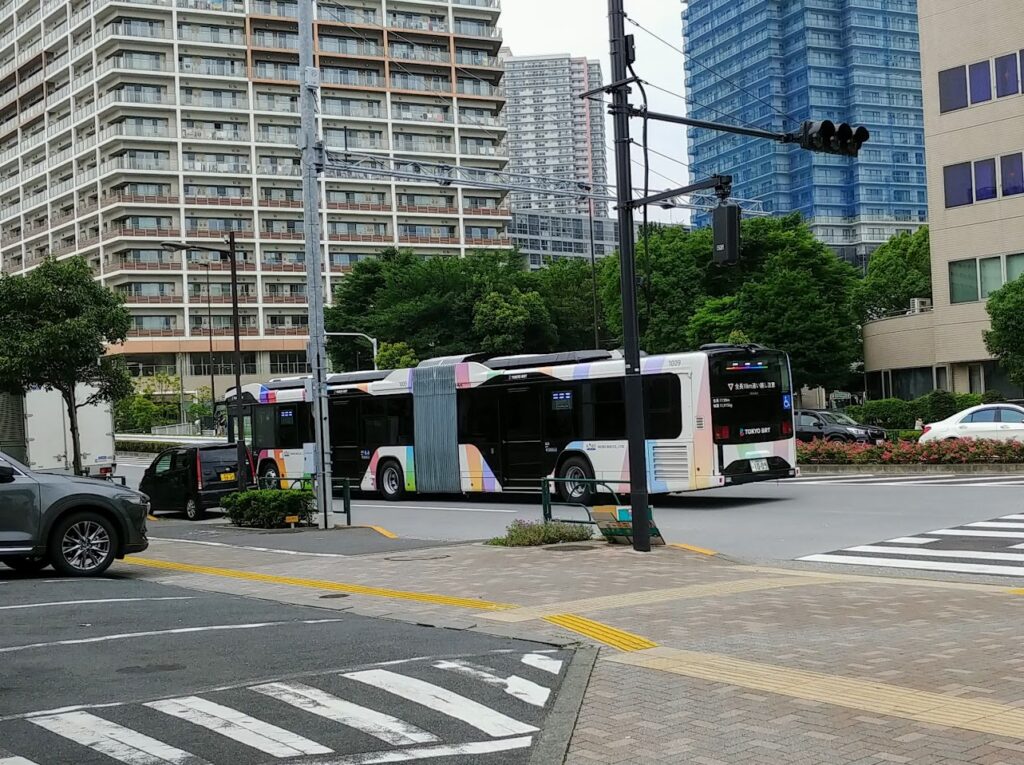 途中、東京BRTのテスト運転に遭遇。